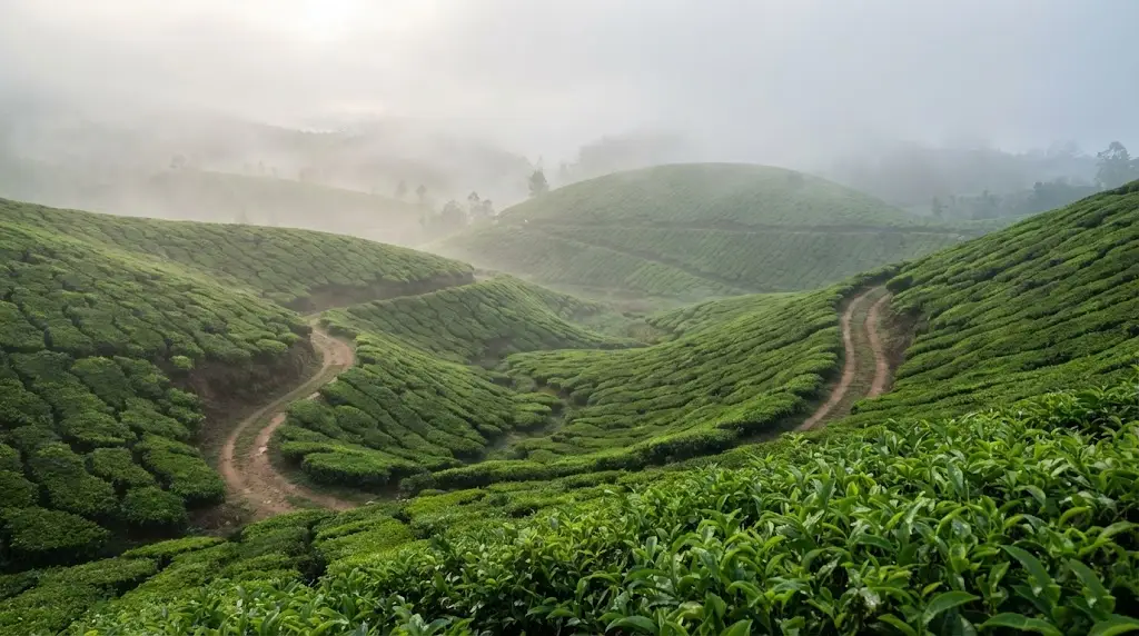 Famous as the heaven of South India, Munnar is located in Kerala. Munnar is known for its lush green valleys, vast tea plantations, misty hills, and natural beauty. Among its amazing sights, the most special is the Neelakurinji flower, which blooms once every 12 years and paints the surroundings blue. Munnar is also influenced by the confluence of three rivers – Muthirapuzha, Nallathani, and Mudrapuzha. Since the British period, Munnar has been a major tourist spot. Tourists can also enjoy the process of tea-making in the Tata Tea Museum.
