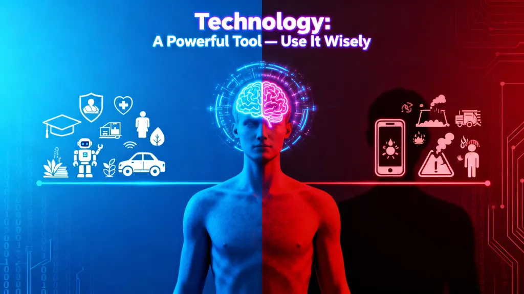 टेक्नोलॉजी (technology) का आविष्कार लोक कल्याण हेतु हुआ है लेकिन लोक कल्याण हेतु के विपरीत उसके कुछ हानिकारक प्रभाव पड़ते हैं। जिस प्रकार सिक्के के दो पहलू होते हैं, उसी प्रकार टेक्नोलॉजी (technology) के लाभदायक एवं हानिकारक दोनों प्रभाव हैं।